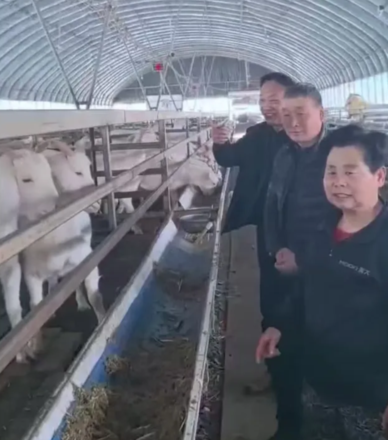 (图注:德源白山羊专业合作社社长、女强人肖亚新与团队成员一同巡视春节出栏羊场)